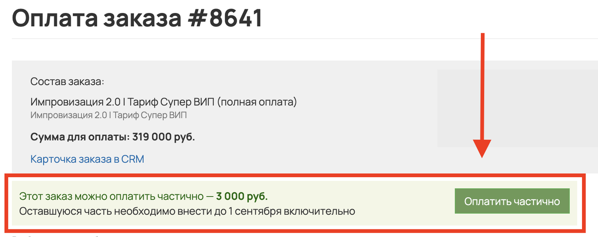 После нажатия кнопки «ОПЛАТИТЬ», вы сможете внести предоплату 3 000 руб нажав на зеленую кнопку
