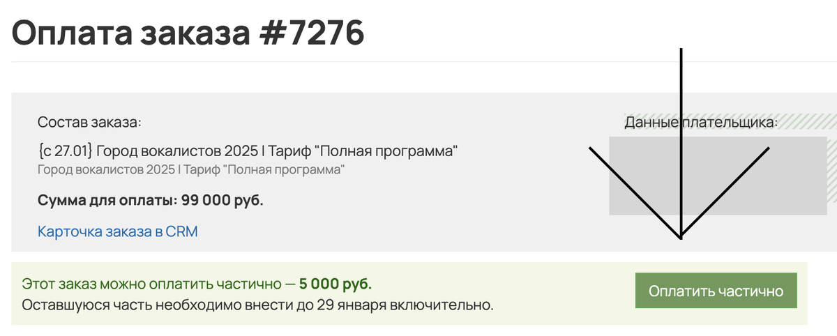 После нажатия кнопки «ОПЛАТИТЬ», вы сможете внести предоплату 5 000 руб нажав на зеленую кнопку